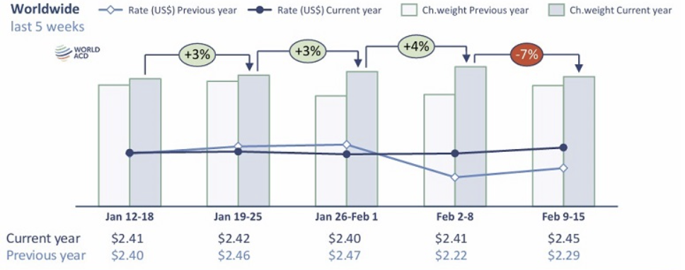 ;但美线由东南亚货量部分抵消,亚太→美国航线运价可用重量