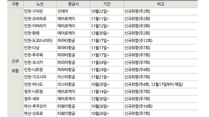 3) 동계시즌 신규 취항 가뭄 LCC 항공사들은 속도 조절 중