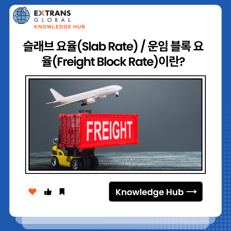 슬래브 요율(블록 요율, 계층 요율, 구간 요율이라고도 함)은 운송사와 포워더가 중량 또는 부피 구간(이를 '슬래브'라 함)에 따라 운임을 차등 적용하는 가격 구조입니다. 단순히 kg당 또는 CBM당 단일 요율을 적용하는 대신, 특정 기준점(threshold)에서 요율이 바뀌며, 최종 비용은 화물이 어느 구간에 해당하는지에 따라 계산됩니다.